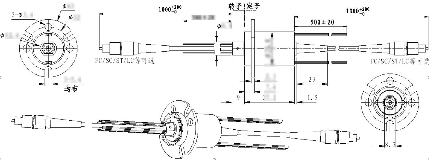 產(chǎn)品完全滿足360度無限制旋轉(zhuǎn)的光信號和電信號混合傳輸;