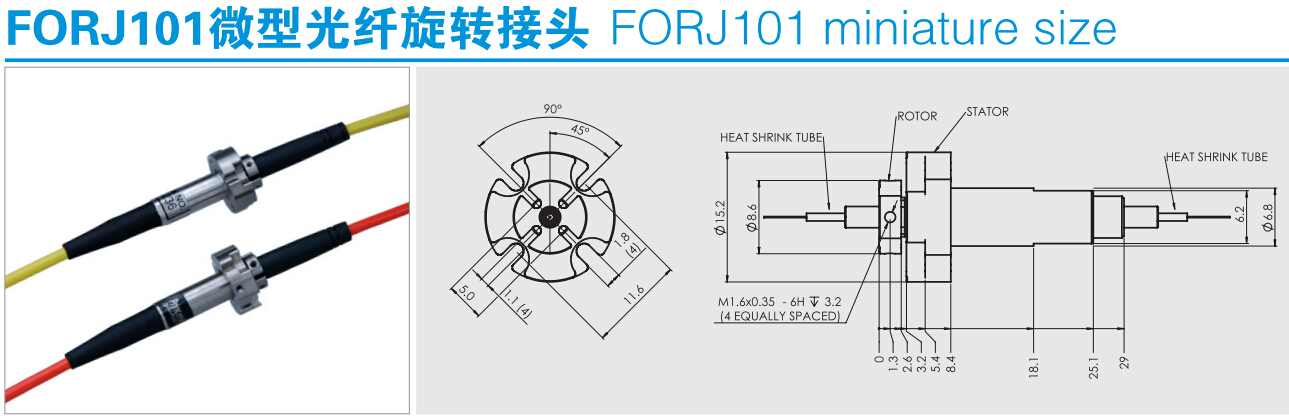 FORJ101光纖旋轉(zhuǎn)接頭用于單?;蚨嗄O到y(tǒng)的光電旋轉(zhuǎn)連接;完全的雙向旋轉(zhuǎn);與現(xiàn)有的電氣滑環(huán)設計相融合;全封閉結(jié)構(gòu);能為客戶量身定制所需要的光纖滑環(huán)
